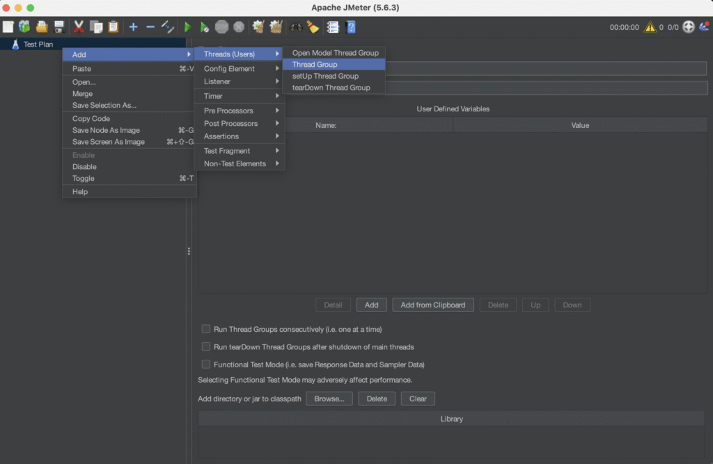 - Right-click on Test Plan > Add > Threads (Users) > Thread Group