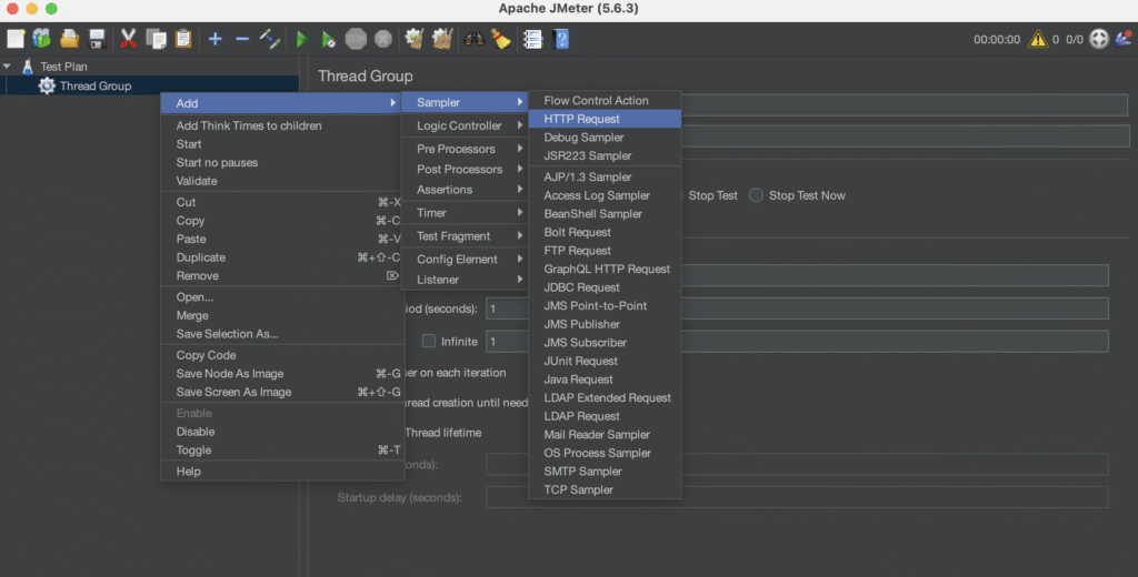 - Right-click on Thread Group > Add > Sampler > HTTP Request