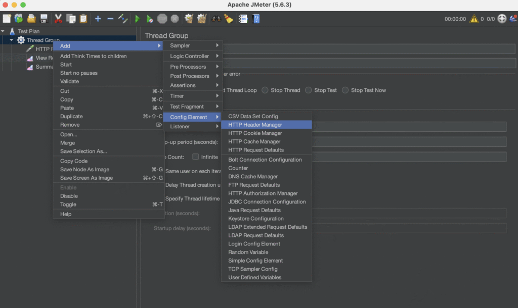 - Right-click on HTTP Request > Add > Config Element > HTTP Header Manager